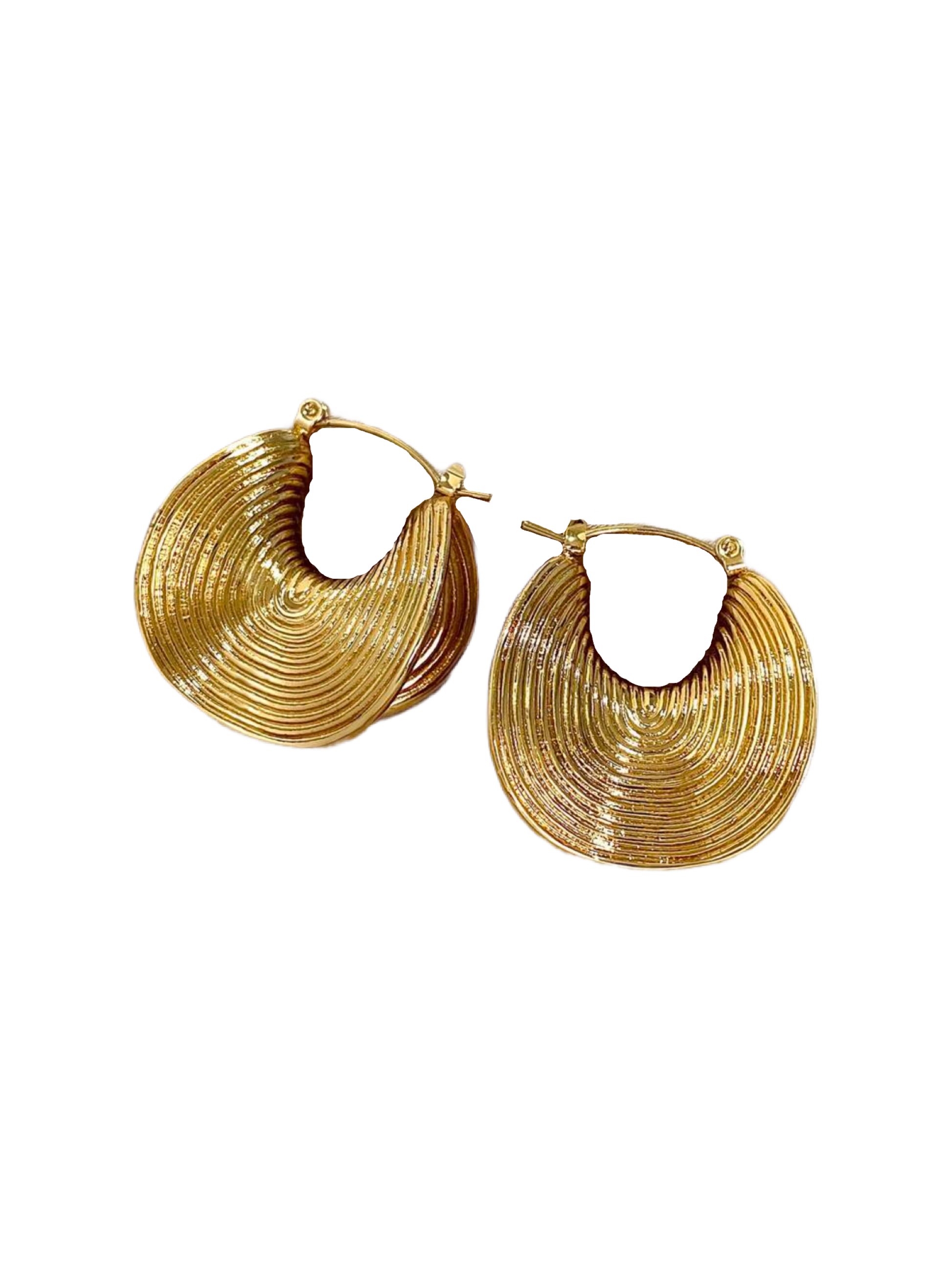 The Helia Hoops are a golden ode to movement - bold, radiant, and fluid like sunlight in motion. Crafted in a sculptural spiral design, these statement earrings channel vintage glamour with a modern twist.