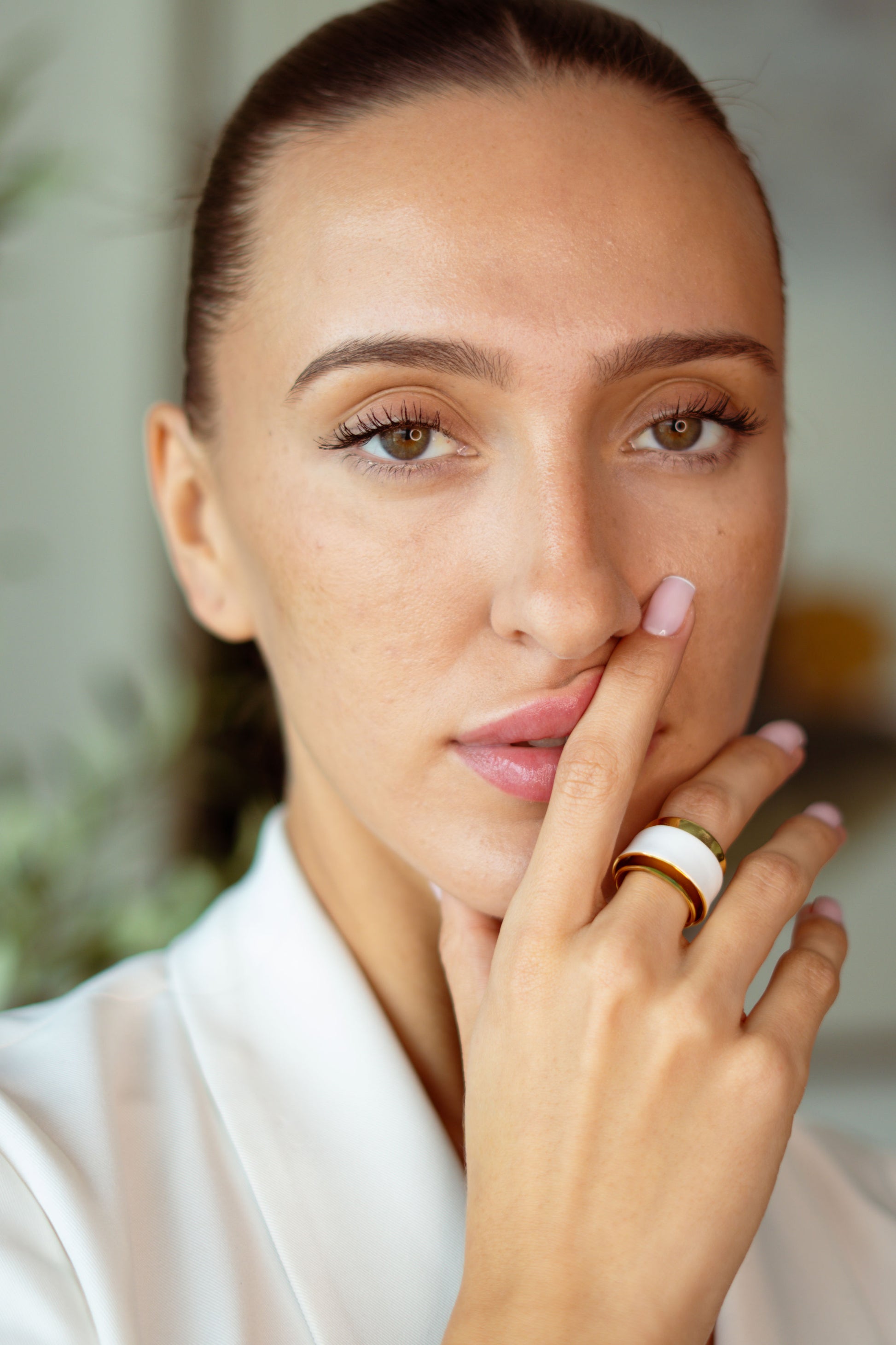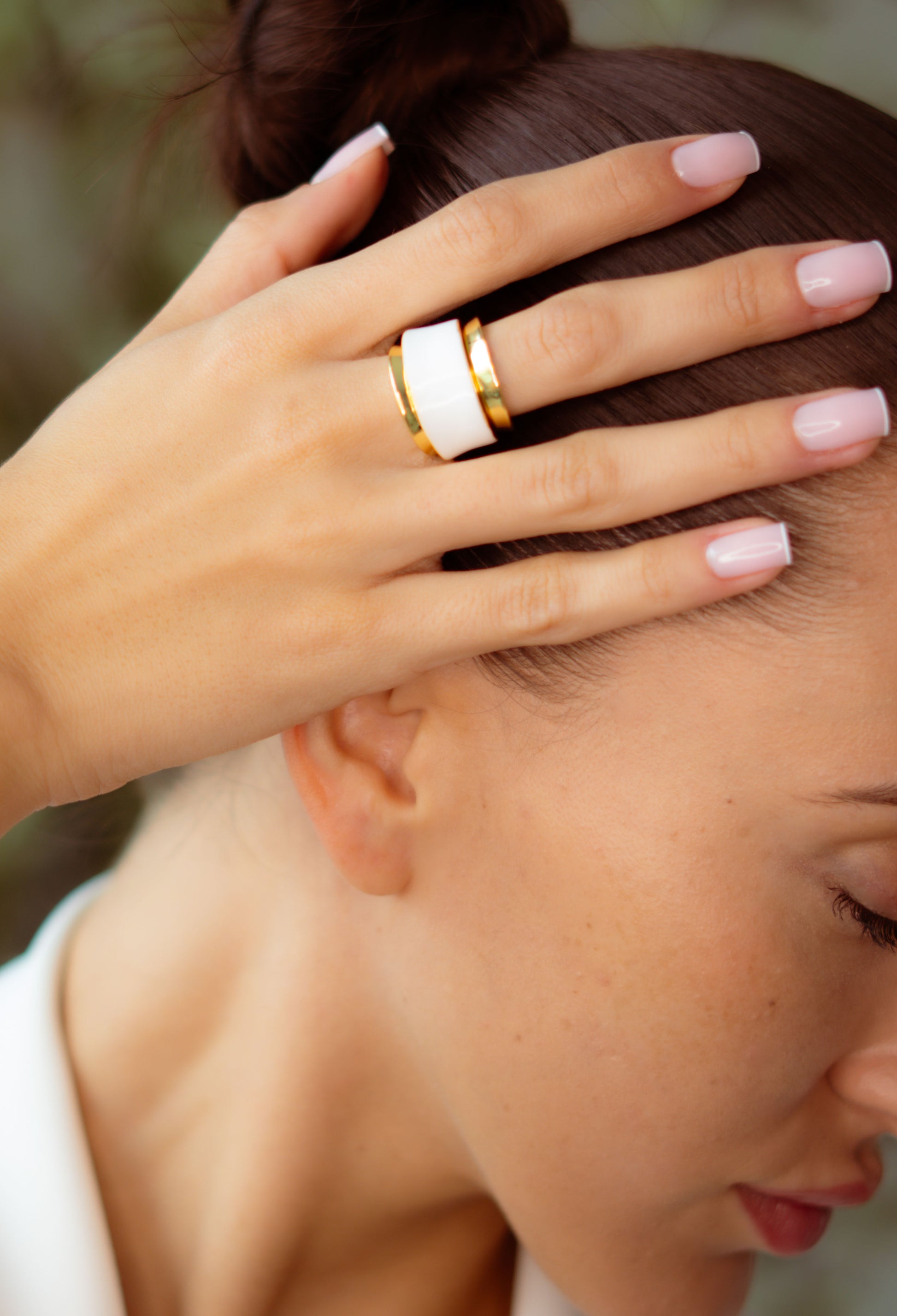 The La Crème Ring is a creamy-toned dream, set in a luminous 18k gold-plated frame. Its smooth, ivory enamel finish catches the light like silk - refined, feminine, and effortlessly chic.