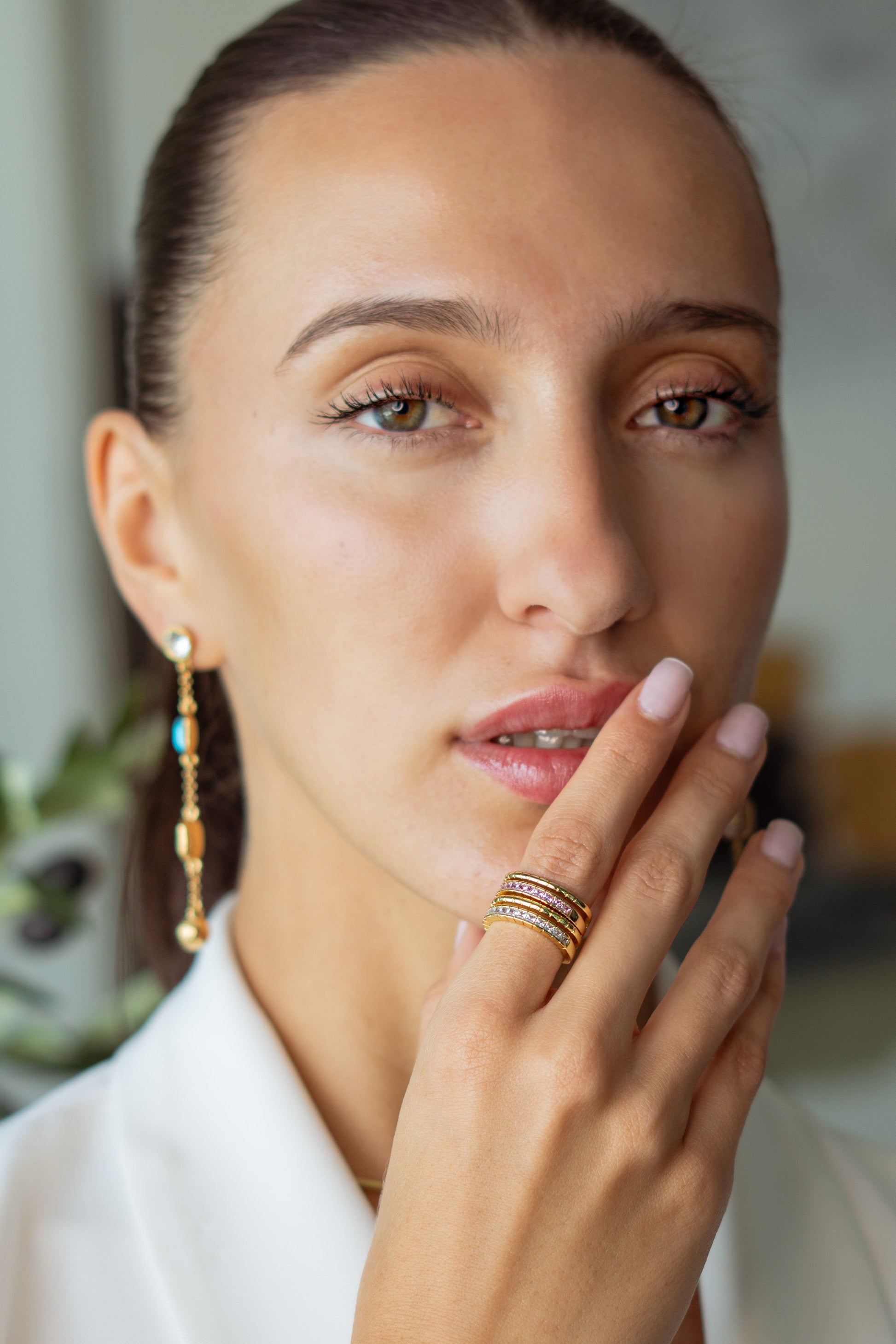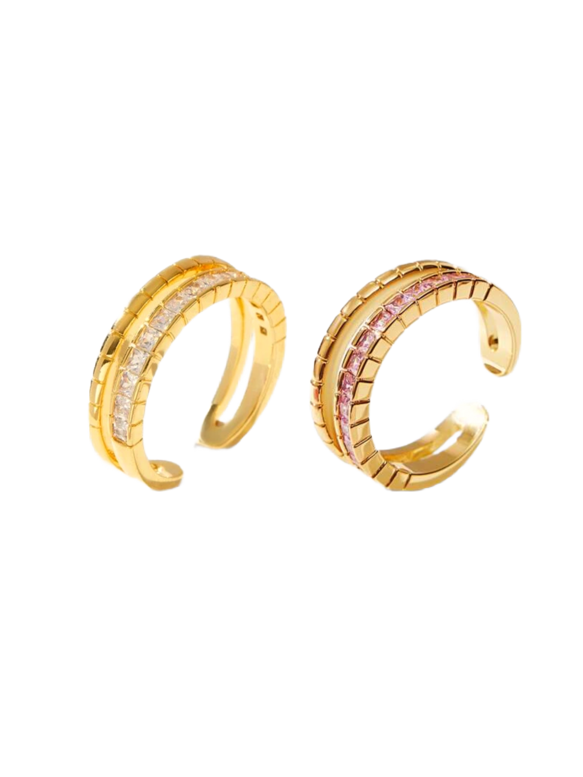 The Le Bijou Rings feature a delicate rose-toned & white-toned stone cradled in a polished 18k gold-plated setting - feminine, timeless, and luminous in every light.