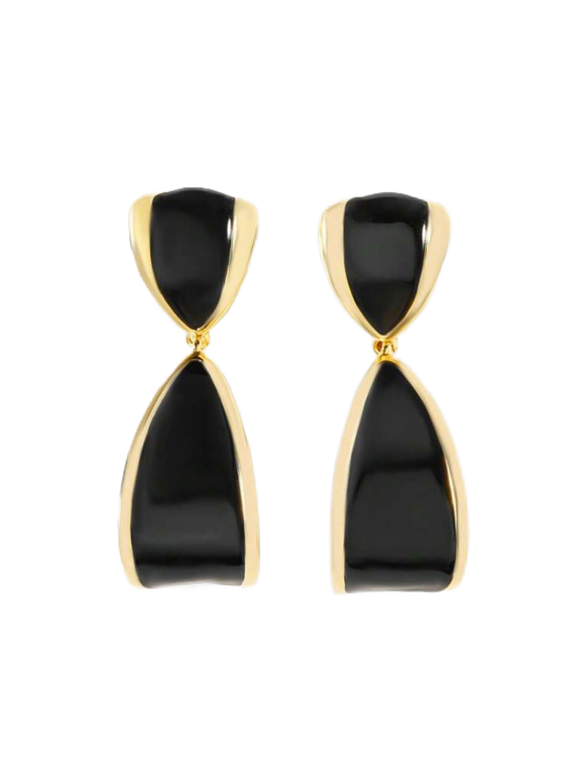 Glossy black enamel set in soft golden frames. Sleek, timeless, and commanding, these earrings embody elegance with a contemporary twist.