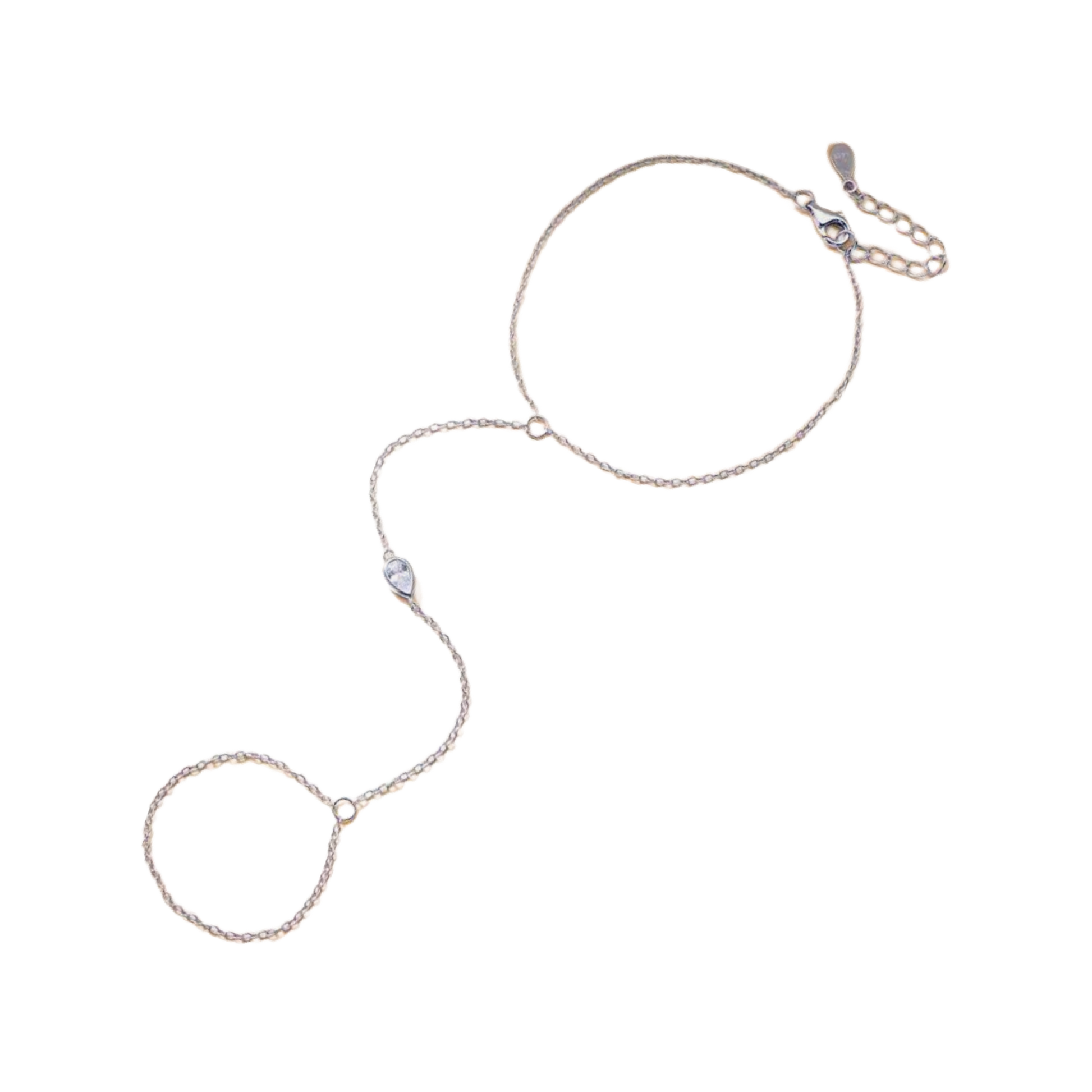 Soft, graceful, and luminous — this sterling silver handchain mirrors the serenity of moonlight. Its teardrop stone catches the light with every movement, embodying calm elegance and celestial charm.